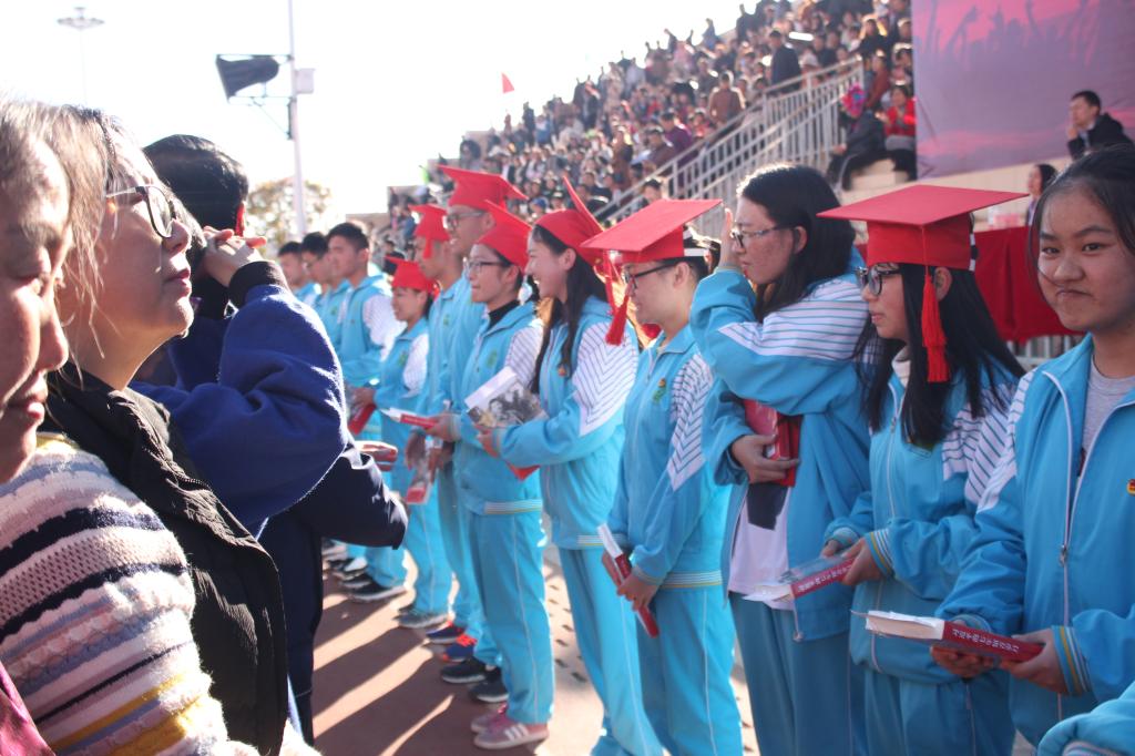 参会领导抽取18名学生发放了成人纪念物《宪法》,并给每个高三班级发放“十八岁成人蛋糕”。