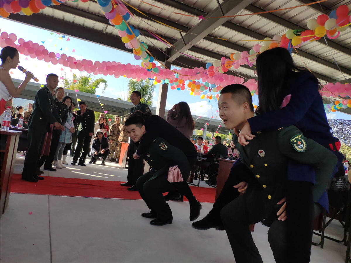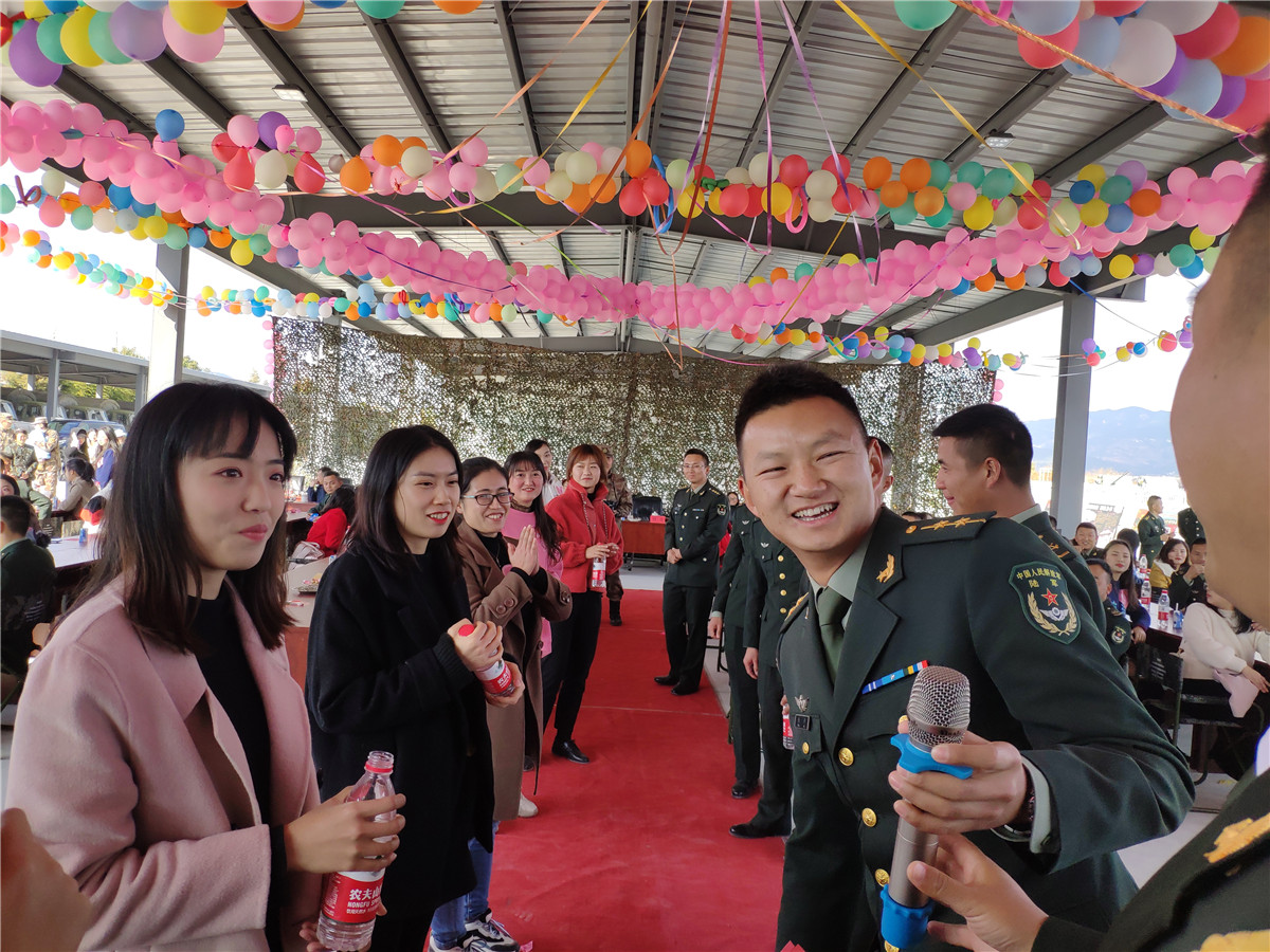 “我走上讲台教书育人,你手握钢枪保家卫国”“你多给我一个微笑或和我多说一句话我们的故事就开始了”。通过一分钟速配、游戏互动、真情表白各项活动的有序进展,更是把联谊会气氛推向高潮,丝丝情谊蔓延开来。军人们的担当、柔情,女嘉宾们的贤惠大方,不经意间就让整个营地充满浪漫气息。