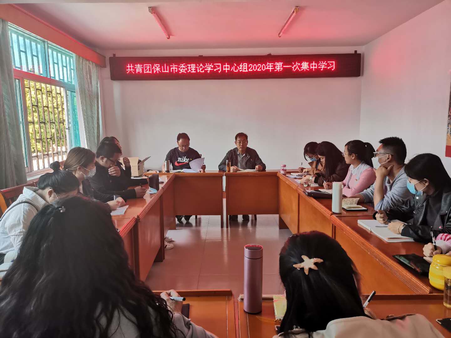 3月31日,共青团保山市委组织机关和市青少年宫全体干部职工,开展理论学习中心组2020年第一次集中学习。会议以“深入学习习近平新时代中国特色社会主义思想和党的十九大精神,深刻学习领会习近平总书记考察云南重要讲话精神,深刻学习领会习近平总书记关于‘正确认识和把握云南在全国发展大局中的地位和作用’的重要指示,深刻领会习近平总书记关于云南在全国发展大局中的四个突出特点的科学判断,进一步深化保山市情、团情认识,坚决贯彻党中央、省、市重大决策部署,更好承担起新时代共青团的使命和责任”为主题。