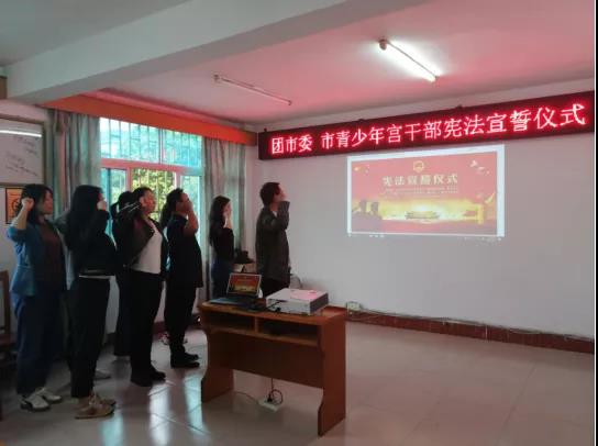 近日,共青团保山市委举行新任职干部集体宪法宣誓仪式,团市委机关和市青少年宫9名新任职干部面向国徽进行了庄严的宪法宣誓。