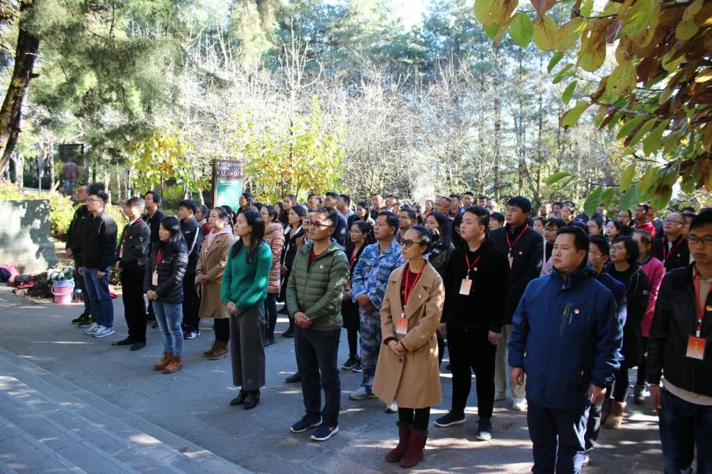 开班仪式结束后,全体学员到杨善洲老书记雕塑前,缅怀老书记,敬献花篮,并重温了入团誓词。