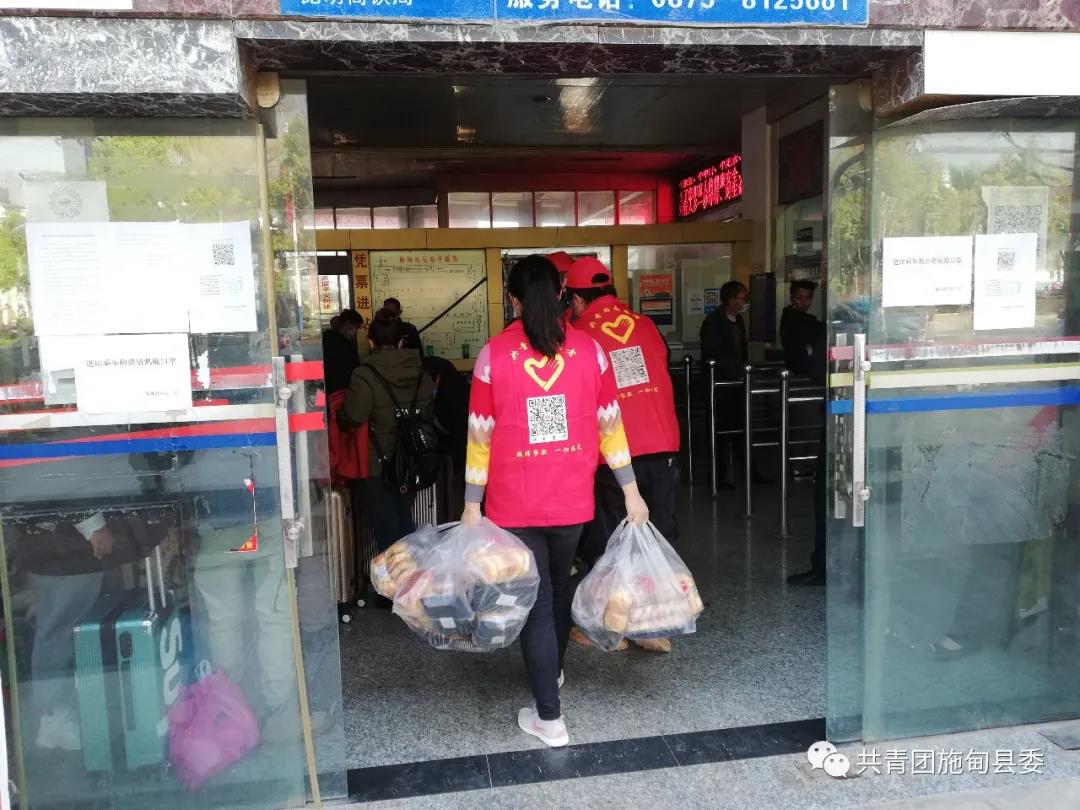 随后,志愿者们帮助务工青年们搬运行李上车并为大家发放准备好的糕点和水。