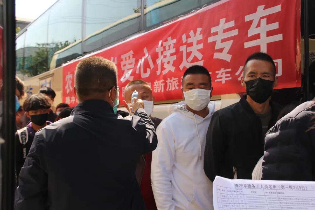 此次活动团市委积极与市人社局合作,整合资源形成合力,着力打造“精准分享、组织输送、常态服务”一站式服务架构。同时,为疫情下外出务工青年提供多方面的渠道支持和服务保障,出发前,团市委和人社局工作人员为每一位外出务工人员提前测量体温,并发放口罩、方便面、矿泉水等物资,对车辆进行严格消毒,保障复工人员安全,降低疫情传播风险。此次出征仪式根据务工人员外出意向,组织了成批次、成规模的专车服务及相邻务工地点有车人员的拼车服务,实现抗疫、就业两不误,全力解决务工人员出行难、就业难问题。复工人员到岗后,还将持续做好跟踪服务,确保外出务工返岗人员“送得出、留得住、安得下”,让外出务工青年感受到党和政府的温暖。