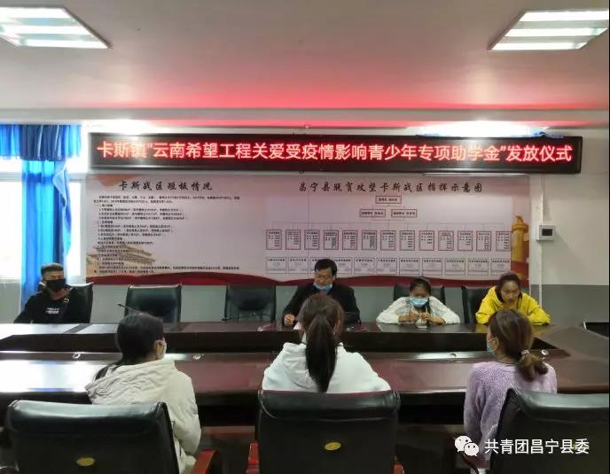 为进一步加强对受疫情影响青少年关爱帮扶工作,共青团昌宁县委积极向上争取“云南省希望工程关爱受疫情影响青少年专项助学金”5万元,下拨至各乡镇团委,用于资助受疫情影响的建档立卡学生,合计100人。