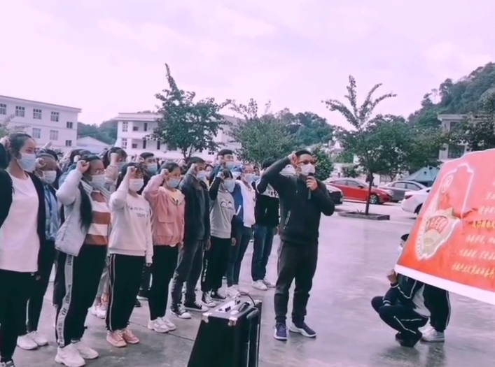 团员佩戴团徽,面对团旗,高举右拳,庄严宣誓,重温入团誓词、合唱团歌。在疫情面前,各级团组织结合工作职责,带领广大青年团员弘扬五四精神,传承共青团的优良传统,服务大局,坚守初心使命。