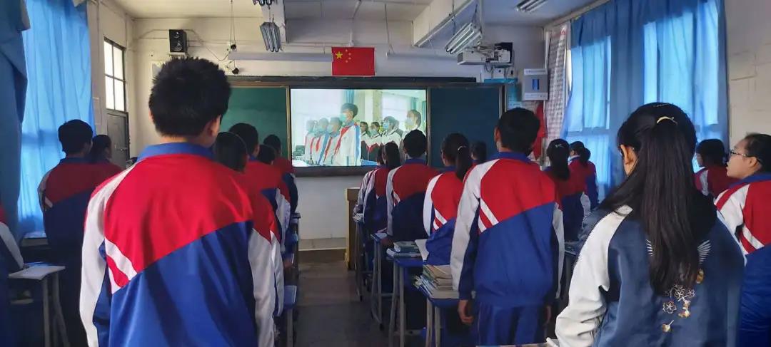 伴随着高亢的旋律,全体隆阳团员青年线上线下齐声高唱《中华人民共和国国歌》
