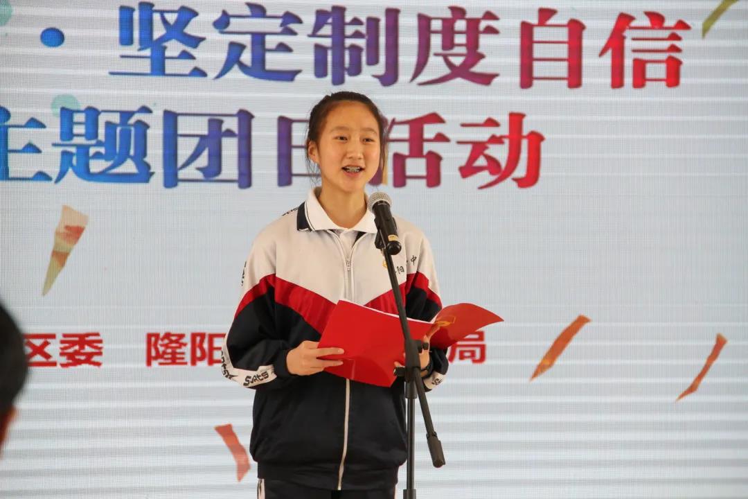隆阳区第一中学的新团员代表刘禹彤发言