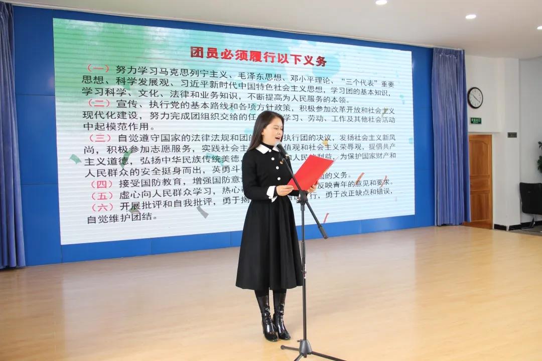 隆阳区第一中学团委书记田颖宣读团章中规定的团员义务和权利。