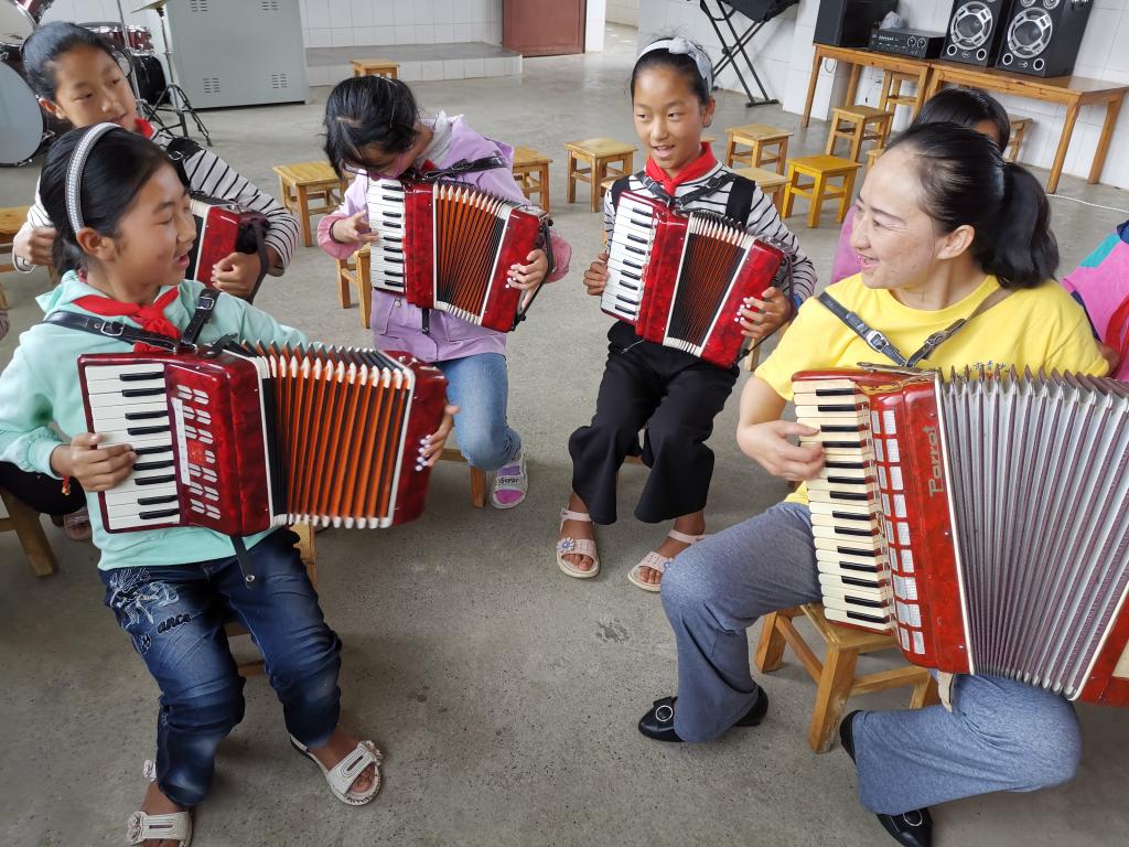 专业教师们分别给一年级学生上舞蹈课《我是一颗小星星》。孩子们挥舞着手中的小星星,化身为一颗颗闪亮的灵动小星星,在美丽校园这个小宇宙中自由闪烁,散发多彩光芒。给二年级学生上美术手工课《春暖花开》,孩子们用手中的画纸、剪刀,精心创造出形态各异、色彩艳丽的花朵。给三年级学生上硬笔书法课,用朗朗上口的写字歌和四点执笔法培养孩子们正确的书写坐姿和握笔方法。给四年级学生上器乐欣赏课,用钢琴、手风琴、古筝、葫芦丝、巴乌五种乐器轮流演奏《桥边姑娘》,让孩子们通过多种乐器合奏,感受不同乐器在同一首乐曲中的不同音色和韵味。