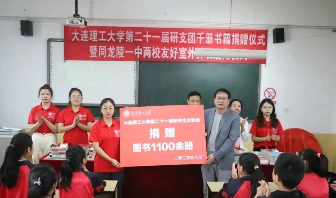 6月24日,大连理工大学第21届研究生支教团云南分团在龙陵县第一中学举行图书捐赠暨两校友好室外钟表启用仪式,代表社会公益组织及爱心人士向龙陵县第一中学捐赠总价值4万余元的图书1100余册,给学校师生提供丰富的课外阅读书籍,营造浓厚校园阅读氛围。