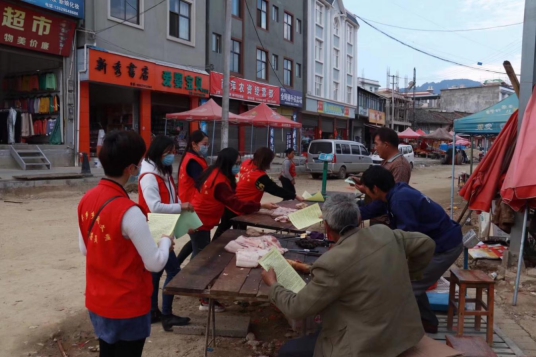 保山市妇幼保健院团支部组织15名团员青年到兰花社区卫生网格区开展捡垃圾、清除小广告、餐饮服务环境卫生改善宣传等活动。