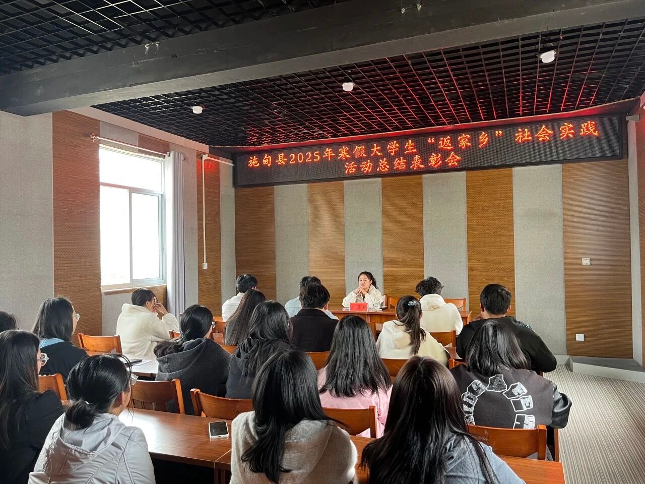 为深入贯彻落实习近平总书记关于青年工作的重要思想,全面总结大学生“返家乡”社会实践所取得的成果,进一步鼓励引导更多施甸青年在投身基层建设、服务家乡发展中坚定信念、增长本领、作出贡献。近日,共青团施甸县委召开施甸县2025年寒假大学生“返家乡”社会实践活动总结表扬会,团县委有关负责同志及20余名返家乡大学生参加会议。