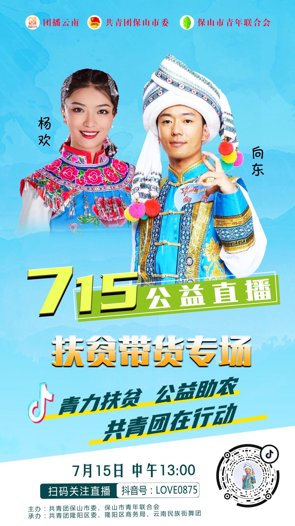 保山共青团干部和云南民族街舞团向东、杨欢夫妇将一起参与扶贫直播。