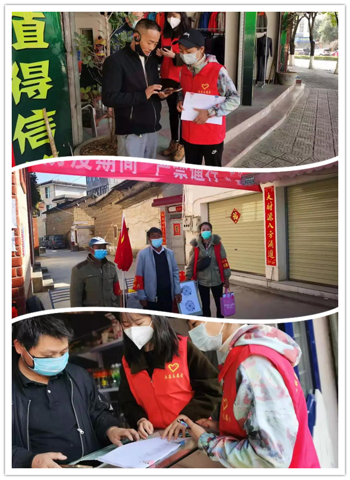 施甸县共招募52名青年志愿者,广大青年志愿者积极配合畜牧站、安监站、派出所等部门,对各乡镇农贸市场、超市、小卖部、农家乐等场所进行排查,对外来走亲访友人员进行登记和劝返,切实降低外来病毒流入风险;积极到社区报到,劝导群众暂停群众性聚集活动,主动参与体温检测、办公区消毒、卫生清扫等工作。
