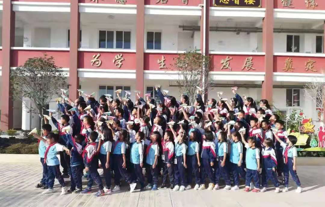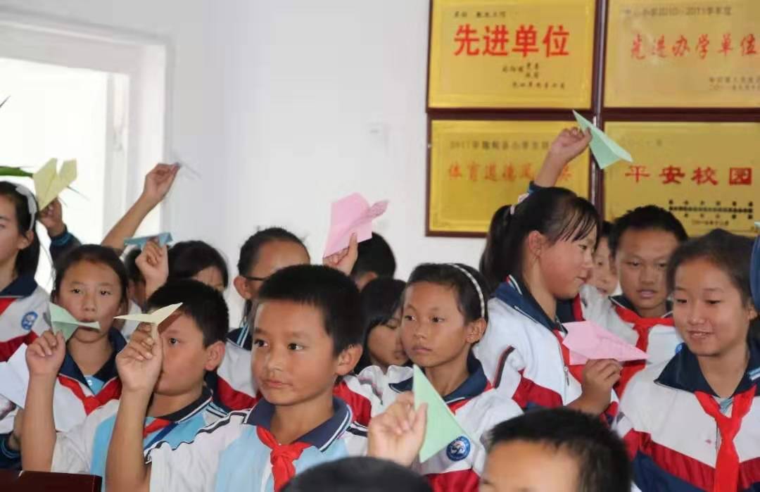 揭牌仪式结束后,同学们写下了自己的“梦想纸飞机”,三……二……一……飞!”在老师指挥的口号声中,同学们依次走到操场上,掷出了载着自己梦想和欢乐的纸飞机。