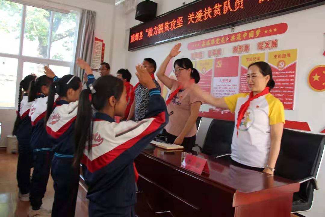 主持人宣布活动开始后,由5名学生代表为领导佩戴红领巾、敬队礼。领导、家长代表、学生代表先后作交流发言。