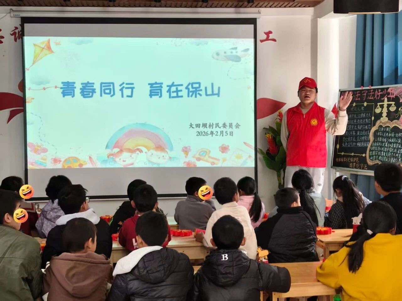 为引导大学生在服务家乡、奉献社会中增长才干、锤炼本领,保山市2026年大学生“返家乡”社会实践活动中开展了“青春同行 育在保山”行动,聚焦乡村教育振兴,以“学海扬帆”“爱伴成长”“乡育同心”三大板块为抓手,组织返乡大学生深入乡村社区,开展课业辅导、家书传情、暖心交流等特色活动,用青春力量护航少年儿童健康成长,以实际行动书写育人担当。