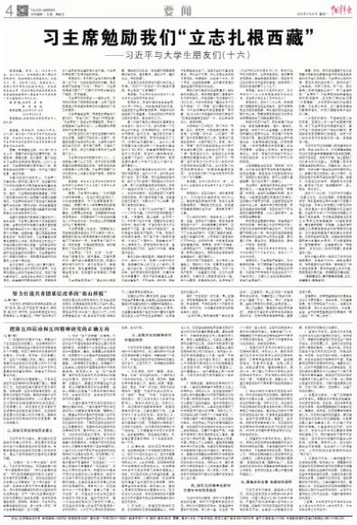 习主席勉励同学们“要立志扎根西藏,踊跃到农牧区去,到祖国和西藏最需要的地方去,磨炼意志、增长才干,建功立业、报效祖国”。
