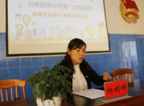 为进一步推进社会主义核心价值体系建设,加强女性文明意识,引领女性认真贯彻学习党的十九大精神,积极展现自尊、自信、自立、自强的新时代精神风貌,值此“三八”妇女节到来之际,共青团保山市委、保山市青少年宫开展了“创建文明城市 争做文明市民”知识讲座和“庆三八”学习贯彻党的十九大精神知识竞答活动。