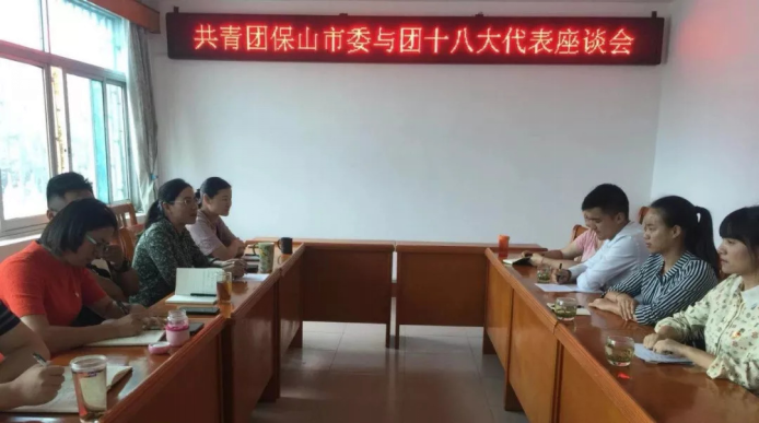7月2日下午,团市委副书记杨博、杨胡辉与出席团十八大的保山代表进行座谈。团市委机关各部室负责人和代表所在县级团委负责人参加座谈。