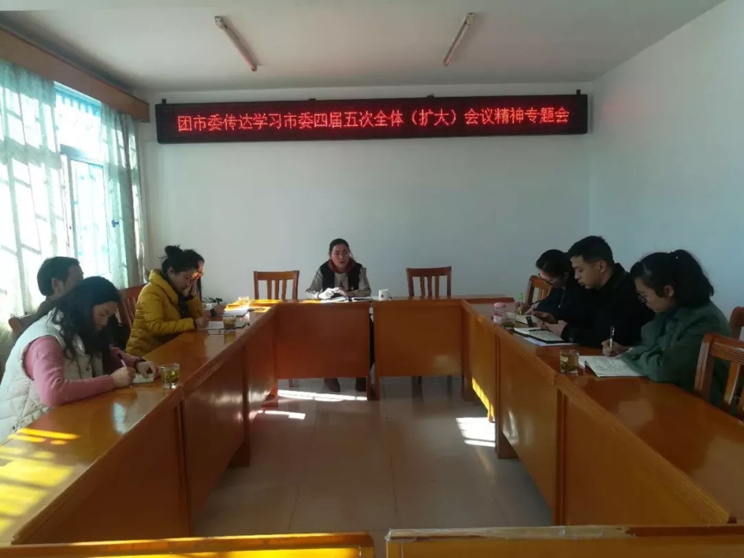 1月7日,团市委召开传达学习市委四届五次全体(扩大)会议精神专题会,团市委副书记杨胡辉主持会议并讲话,团市委机关及全体党员参加会议。