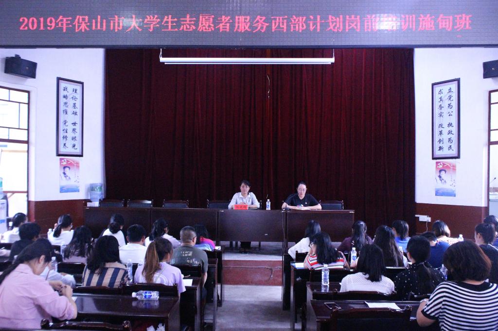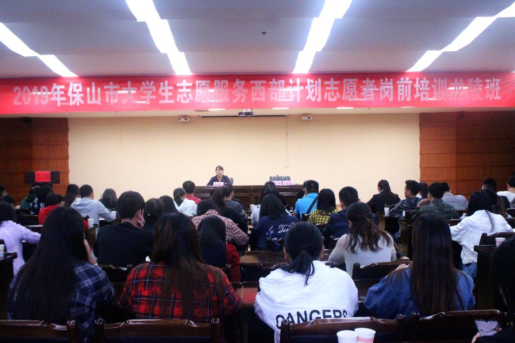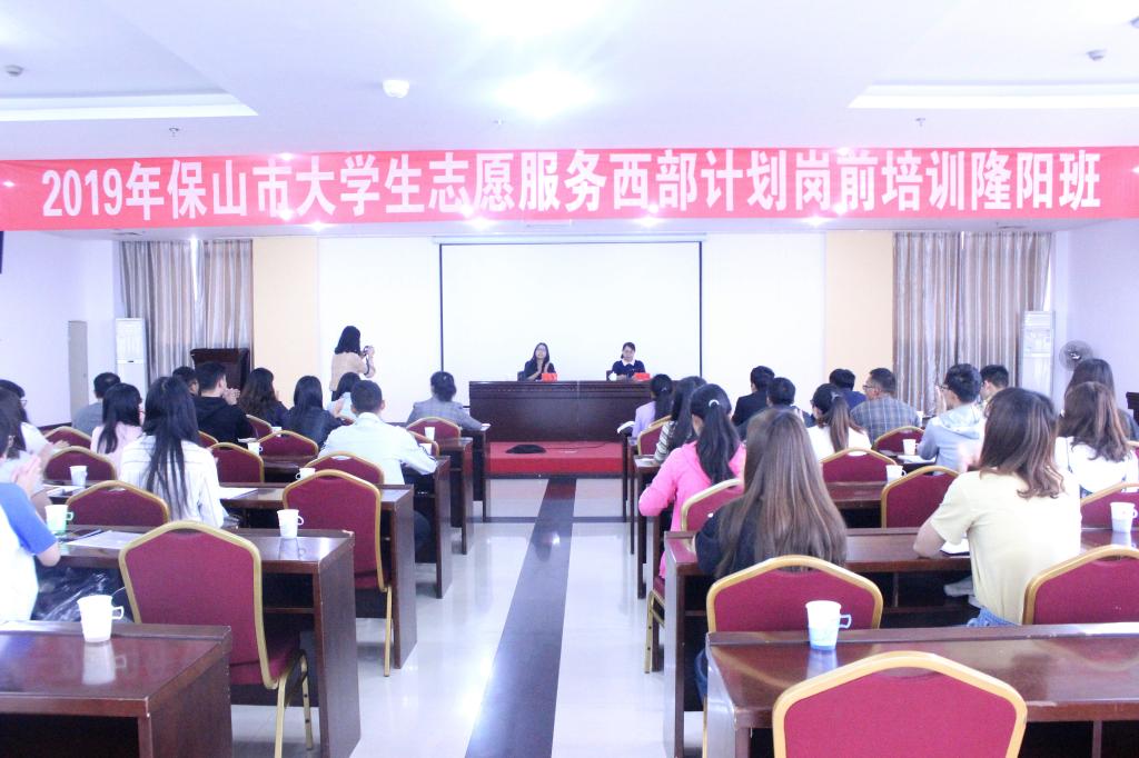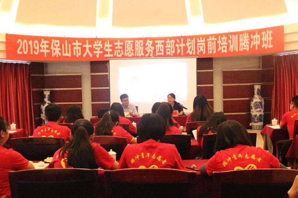 为进一步提升全市大学生志愿服务西部计划志愿者的服务意识、服务能力和服务水平,7月29日至31日,共青团保山市委先后在施甸县、隆阳区、腾冲市、龙陵县举办2019年大学生志愿服务西部计划岗前培训班。团市委副书记杨胡辉出席开班仪式,并为志愿者们进行专题辅导。