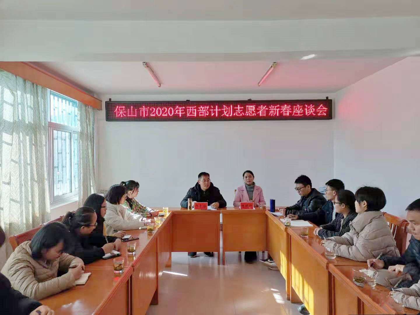 为切实加强对西部计划志愿者的管理和服务,全面了解志愿者的思想动态、工作情况和生活状况,不断提升志愿服务的能力和水平,1月22日,共青团保山市委召开2020年西部计划志愿者新春座谈会。团市委书记那青海、副书记杨胡辉和15名西部计划志愿者代表参加会议。