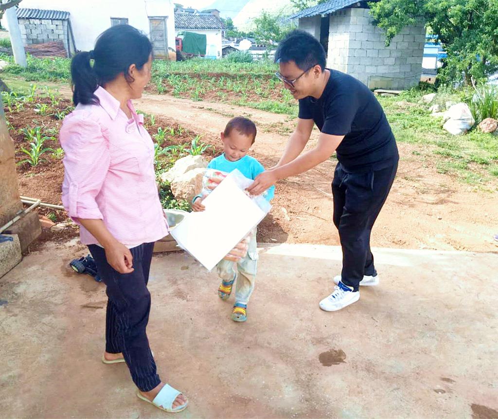 在“六一”国际儿童节到来之际,共青团保山市委组织干部职工深入挂钩帮扶的隆阳区瓦渡乡荒田村开展庆“六一”关爱少年儿童慰问活动,为挂钩农户的孩子们带去水彩笔、面包等礼物,给孩子们送上节日的祝福。