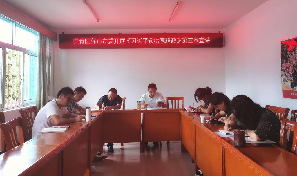8月31日,共青团保山市委组织开展《习近平谈治国理政》第三卷学习宣讲,团市委书记那青海从重要意义、主要内容、认真学习贯彻三个方面进行宣讲,团市委机关全体干部职工和市青少年宫负责人参加学习。
