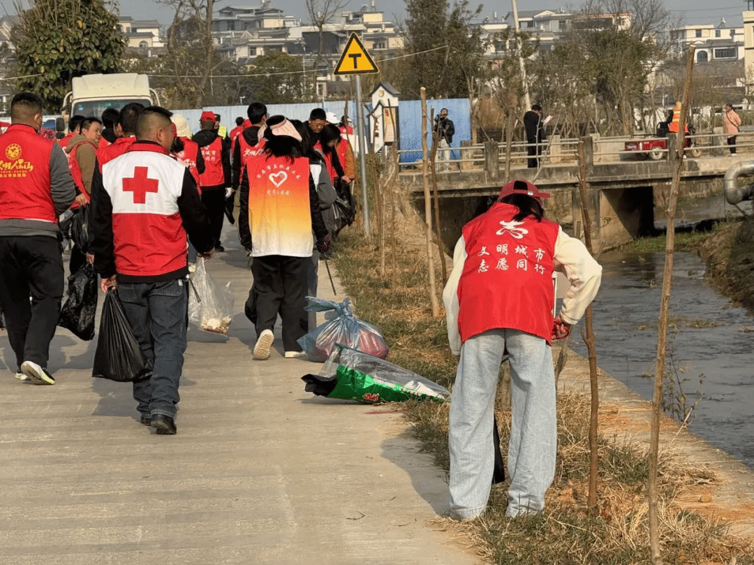 活动现场,志愿者们手持垃圾夹、垃圾袋、清洁工具,沿河道沿岸开展拉网式清洁。大家分工协作、默契配合,认真清理河滩杂草、白色垃圾、漂浮物与卫生死角,不放过一处隐蔽杂物。红色身影穿梭于青山碧水,成为春日里一道温暖风景。