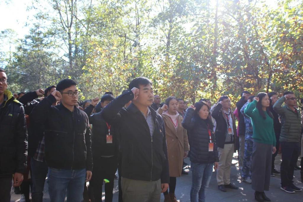 开班仪式结束后,全体学员到杨善洲老书记雕塑前,缅怀老书记,敬献花篮,并重温了入团誓词。
