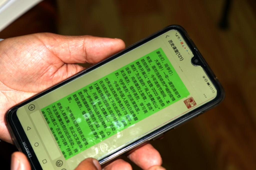 学生还没开学,勐冒中学历史老师、楹联兴趣小组老师房家维巧用微信群,一边向学生开展爱国主义教育,一边培养学生的楹联写作能力。