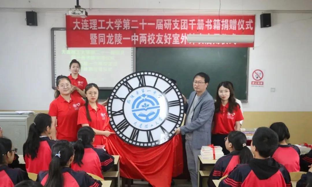 6月24日,大连理工大学第21届研究生支教团云南分团在龙陵县第一中学举行图书捐赠暨两校友好室外钟表启用仪式,代表社会公益组织及爱心人士向龙陵县第一中学捐赠总价值4万余元的图书1100余册,给学校师生提供丰富的课外阅读书籍,营造浓厚校园阅读氛围。