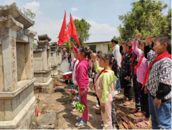 开展“红领巾心向党,缅怀革命先烈” 主题队会活动,积极开展学党史、讲红色故事、说革命英雄、颂红色诗歌、唱红色歌曲、说家乡变化等多种形式的活动,文明祭祀,缅怀先烈。