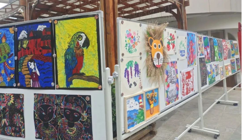 活动上,美术、书法培训班学员对《撑油伞的少年》《花儿俏》《“袋”着梦想出发》《国风少年》《童年转呀转》《书·韵》6部书画作品进行展示。