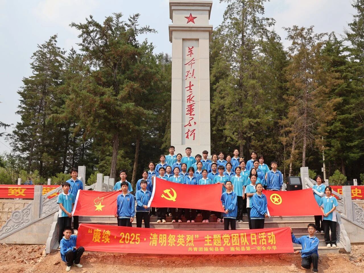 为深入贯彻落实习近平总书记关于弘扬英烈精神、传承红色基因的重要指示精神,深切缅怀革命先烈的丰功伟绩,引导青少年继承和发扬革命优良传统。4月3日,共青团施甸县委、施甸县少工委联合施甸县第一完全中学、甸阳镇菖蒲塘小学到施甸县烈士陵园开展主题党团队日活动,团县委全体人员、甸阳镇菖蒲塘小学、施甸县第一完全中学600余师生参加活动。