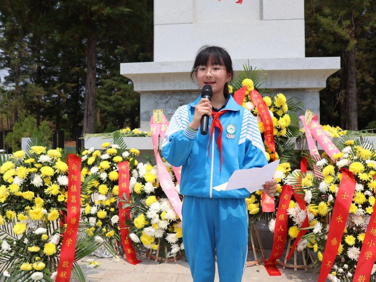 优秀学生代表们声情并茂地讲述英雄烈士的英勇事迹,英烈们的故事震撼着同学们的心灵,“作为新时代的少年,应当铭记历史,珍惜现在,努力学习,为实现中华民族伟大复兴的中国梦贡献自己的力量!”