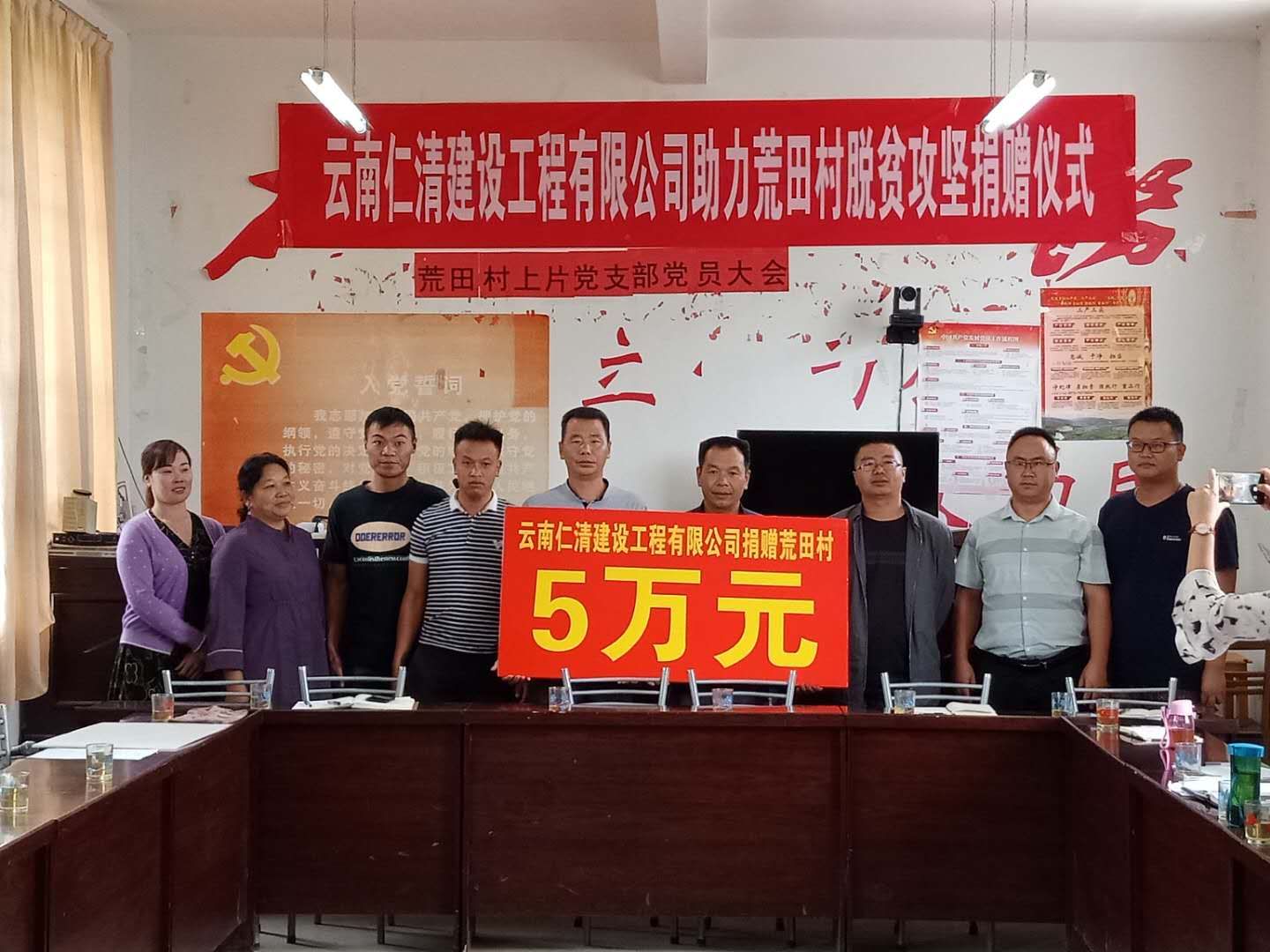 8月20日,团市委携爱心企业助力荒田村脱贫攻坚捐赠仪式在瓦渡乡荒田村委会举行。团市委副书记许一斌、云南仁清建筑工程有限公司副总经理周代贤、瓦渡乡人民政府乡长王彪、荒田村党总支书记杨富等20余人参加捐赠仪式。捐赠仪式上,云南仁清建筑工程有限公司为荒田村捐赠资金5万元。
