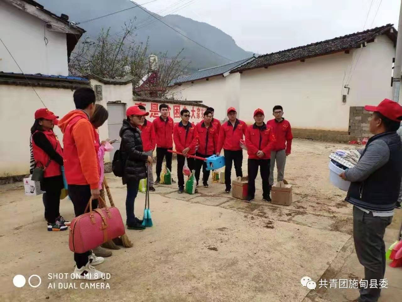3月8日,团县委联合中铁十八局的团干部以及部分青年志愿者,结合共青团助力脱贫攻坚“美丽庭院”建设行动,在由旺镇躲安村积极开展庭院环境整治、垃圾清理,等志愿服务活动,并为他们送去米、油、电饭煲、牙膏、牙刷、脸盆等生活用品。
