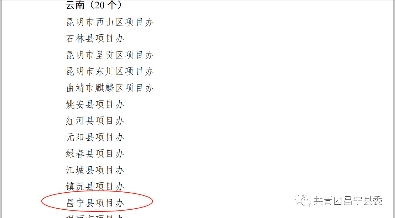 2020年1月21日,全国大学生志愿服务西部计划项目办下发《关于印发2019年西部计划绩效考核优秀等次县级项目办和高校项目办名单的通知》(全国项目办发【2020】1号)文件,昌宁县项目办获2019年西部计划绩效考核优秀等次。据悉,全国获2019年西部计划绩效考核优秀等次县级项目办共191个,其中云南20个,保山市1个。