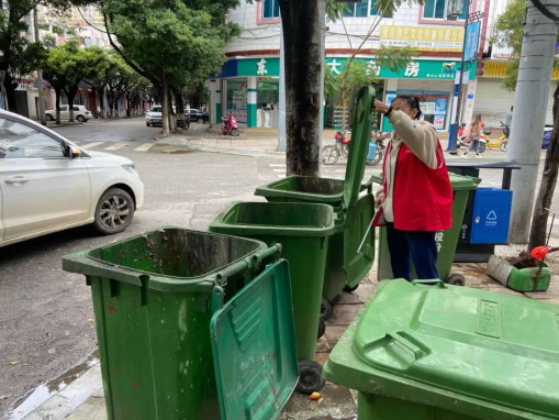 组织志愿者深入社区,向群众宣传爱国卫生“7个专项行动”知识,清理社区街道上的小广告、白色垃圾,对社区内摆放的垃圾桶进行合理放置,并向群众普及垃圾分类知识。