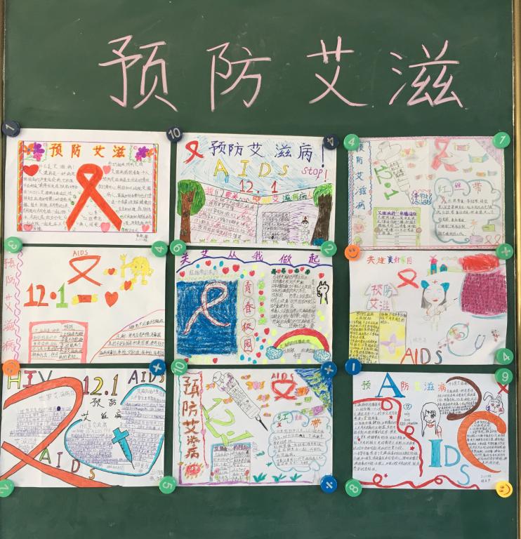 我校充分利用学校的墙报、红领巾广播站、班级微信、张贴 “携手抗艾 重在预防” 宣传标语、发放防艾宣传册、签名活动、召开防艾主题班会、艾滋病知识问答、制作红丝带、组织学生观看《防艾沙画宣传视频》并写下观后感等形式来普及艾滋病预防知识。