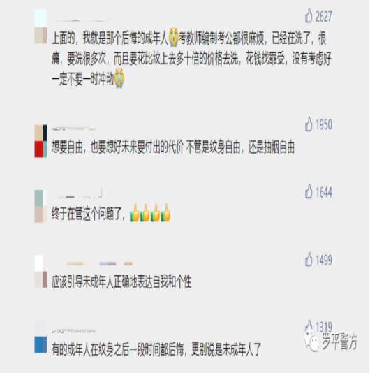 据云南警方描述:近几年办理的未成年人涉罪案件,比如聚众斗殴,寻衅滋事之类案件中的涉案未成年人,有许多都有文身。