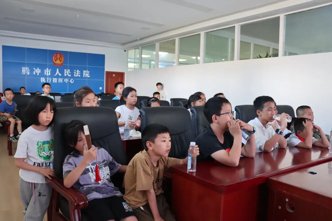 7月16日下午,腾冲法院迎来了一批特殊的“小客人”!参加“团团陪伴·青春童行”暑期公益夏令营的20余名少先队员们,在法院干警的组织和引导下,开启了一场别开生面的法院“探秘”之旅,近距离感受法律的庄严与司法的温度。