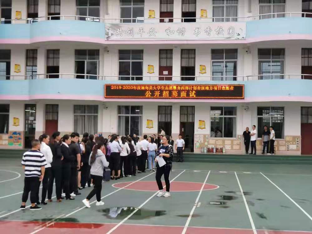 根据共青团保山市委关于2019年大学生志愿服务西部计划省级地方招募工作安排。2019年7月16日,施甸县2019年省级地方项目志愿者招募面试工作在县示范小学圆满结束。经过层层筛选,本次公开招募面试应到64人,实际参加面试52人。