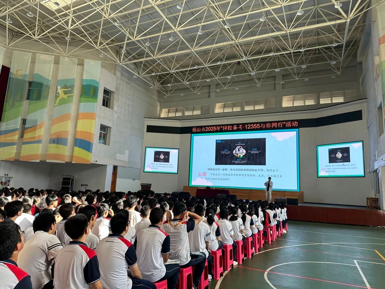 为助力初三学子缓解中考前的紧张与压力,以更从容自信的心态迎接考试,6月14日,共青团腾冲市委在腾冲市第一中学举办“轻松备考·12355与你同行”中考减压活动。此次活动特别邀请到了保山12355青少年服务台专家李银泽担任主讲人,为即将踏上中考考场的同学们送来一场及时雨。