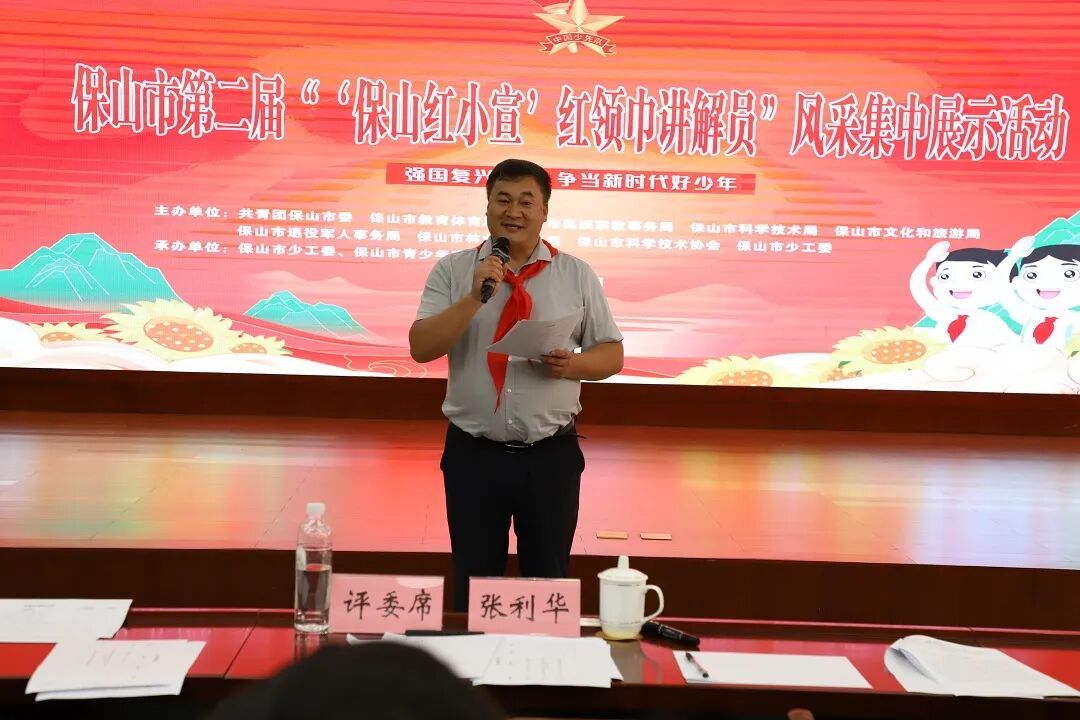 活动采取自下而上逐级评选推荐的形式,经过县级初评推荐,25名优秀红领巾讲解员入围市级集中展示活动,活动由主题讲解、命题讲解、知识问答环节组成,活动现场,选手们用沉稳得体的仪态、清晰流畅的表达和富有感染力的表现,充分展示新时代保山少先队员积极向上的精神面貌。