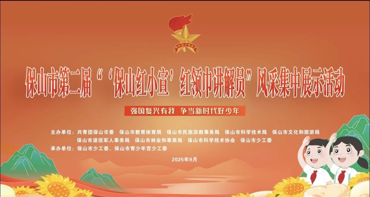 为深入学习贯彻习近平总书记考察云南重要讲话精神,认真落实第九次全国少代会工作部署,不断提升少先队组织活力,丰富少先队教育内容,9月20日至9月21日,共青团保山市委、保山市少工委联合保山市教育体育局、保山市民族宗教事务局、保山市科学技术局、保山市文化和旅游局、保山市退役军人事务局、保山市林业和草原局、保山市科学技术协会九部门联合开展了“强国复兴有我 争当新时代好少年”为主题的保山市第二届“‘保山红小宣’红领巾讲解员”风采集中展示活动。