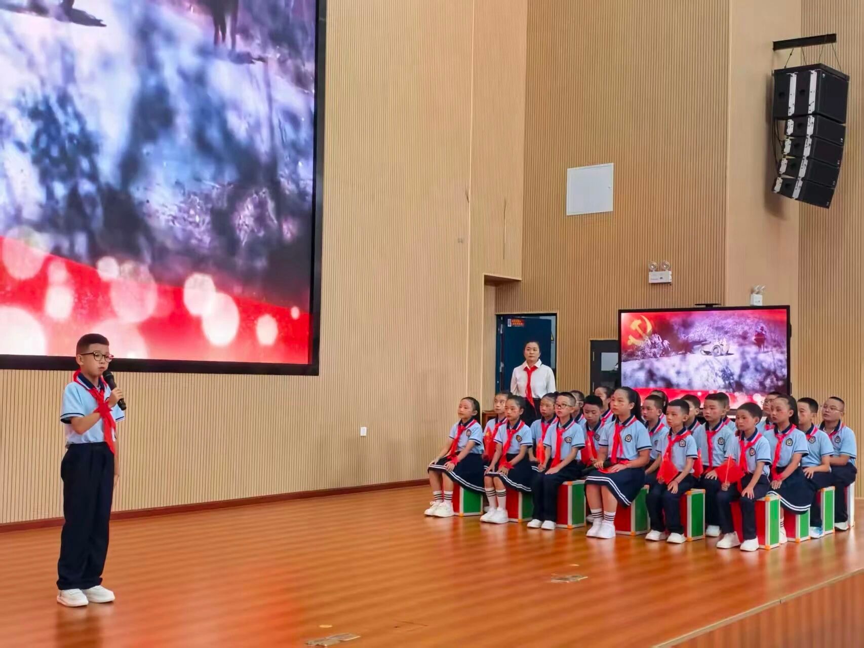 《这盛世如你所愿》《有段历史叫抗战》等经典诗篇,在孩子们铿锵有力的诵读中焕发新的生命力。他们以饱满的热情表达对革命先辈的崇高敬意,以赤诚之心赞颂祖国发展的辉煌成就。朗诵声回荡会场,带领全体师生重温那段峥嵘岁月,触摸历史的脉搏,感受信仰的光芒。站在新时代的起点,队员们更加明确自身使命——将先烈精神转化为前进动力,珍惜和平,奋发图强,守护来之不易的幸福生活。