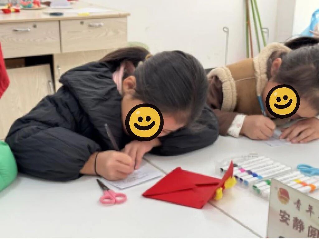 聚焦在外务工家庭的亲情沟通需求,在返乡大学生的耐心引导下,孩子们通过写家书、制贺卡等方式,把对父母的想念一笔一划刻进字里行间。“希望爸爸妈妈能多点时间陪我”“妈妈,我想和你一起去德克士吃炸鸡”“我想快快长大赚钱,让爸爸少辛苦一点”,这些小小的愿望,藏着最纯粹的牵挂与期盼。“我小时候也是留守儿童,孩子的心思我感同身受,亲情谁都替代不了,我只是希望能给他们多一点陪伴,为孩子、为家乡尽己所能做一点事情”,返乡大学生李雅婷感叹道。